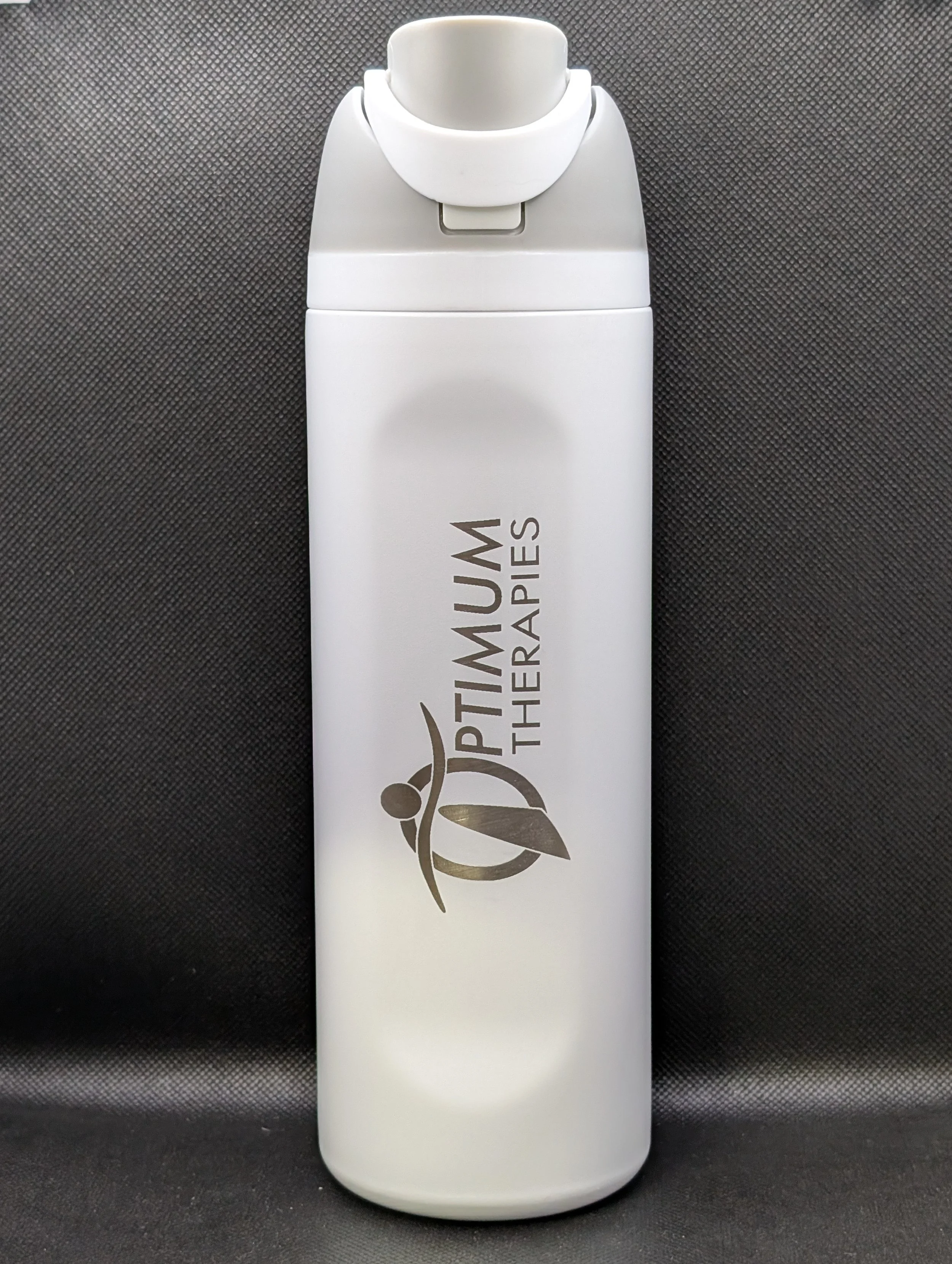 A durable, everyday hydration bottle customized with laser engraving on both sides.